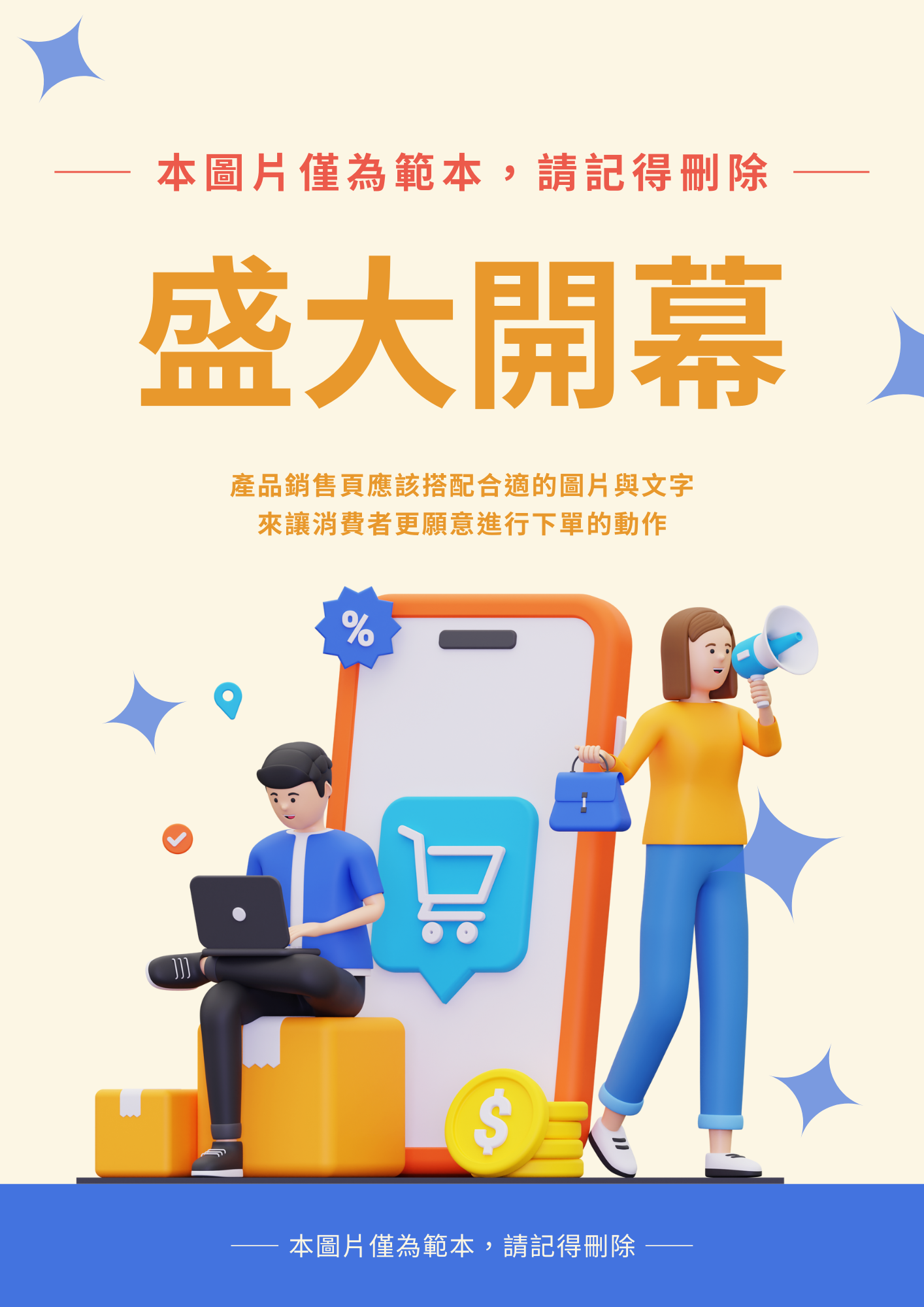 特價中 🔍 簡單商品範例 (熱門 – 無圖庫)NT$999 原始價格:NT$999。NT$699目前價格:NT$699。 這是一款展示用的範例商品,為展示電子商城內容而設計,展示如何進行清晰簡單的商品描述,並且以條列形式說明其主要優點。 商品特色: 高品質材質:採用優質材質製作,保證產品耐用且安全。 實用設計:設計符合現代需求,無論家庭或辦公使用都能發揮出最佳效果。 多功能應用:適合多種場景使用,滿足您的不同需求。 環保選擇:產品製造過程考慮環境影響,使用可持續材料。 時尚外觀:簡約且時尚的外觀設計,適合各種風格空間。 簡單商品範例 (熱門 - 無圖庫) 數量 加入購物車 描述 這邊是你可以放些商品圖片或是文字介紹的區塊 請記得將以下這些內容刪掉換上專屬於你的產品資訊 相關商品 特價中 組合商品範例 (熱門) NT$699 查看商品 特價中 簡單商品範例 (熱門 – 有圖庫) NT$999 原始價格:NT$999。NT$699目前價格:NT$699。 加入購物車 特價中 可變商品範例 (熱門) NT$999 原始價格:NT$999。NT$699目前價格:NT$699。 選擇規格 此產品有多種款式。 可在產品頁面選擇選項 特價中 外部商品範例 (熱門) NT$999 原始價格:NT$999。NT$699目前價格:NT$699。 馬上購買